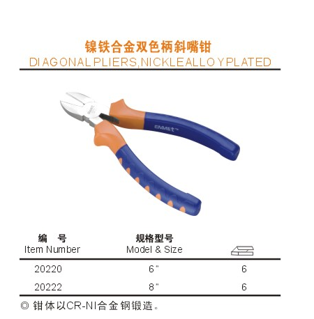 電子工具 / 鉗和剪類 / 鎳鐵合金雙色柄斜嘴鉗