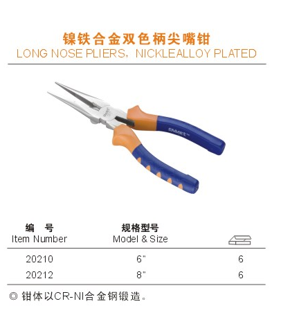 電子工具 / 鉗和剪類 / 鎳鐵合金雙色柄尖嘴鉗